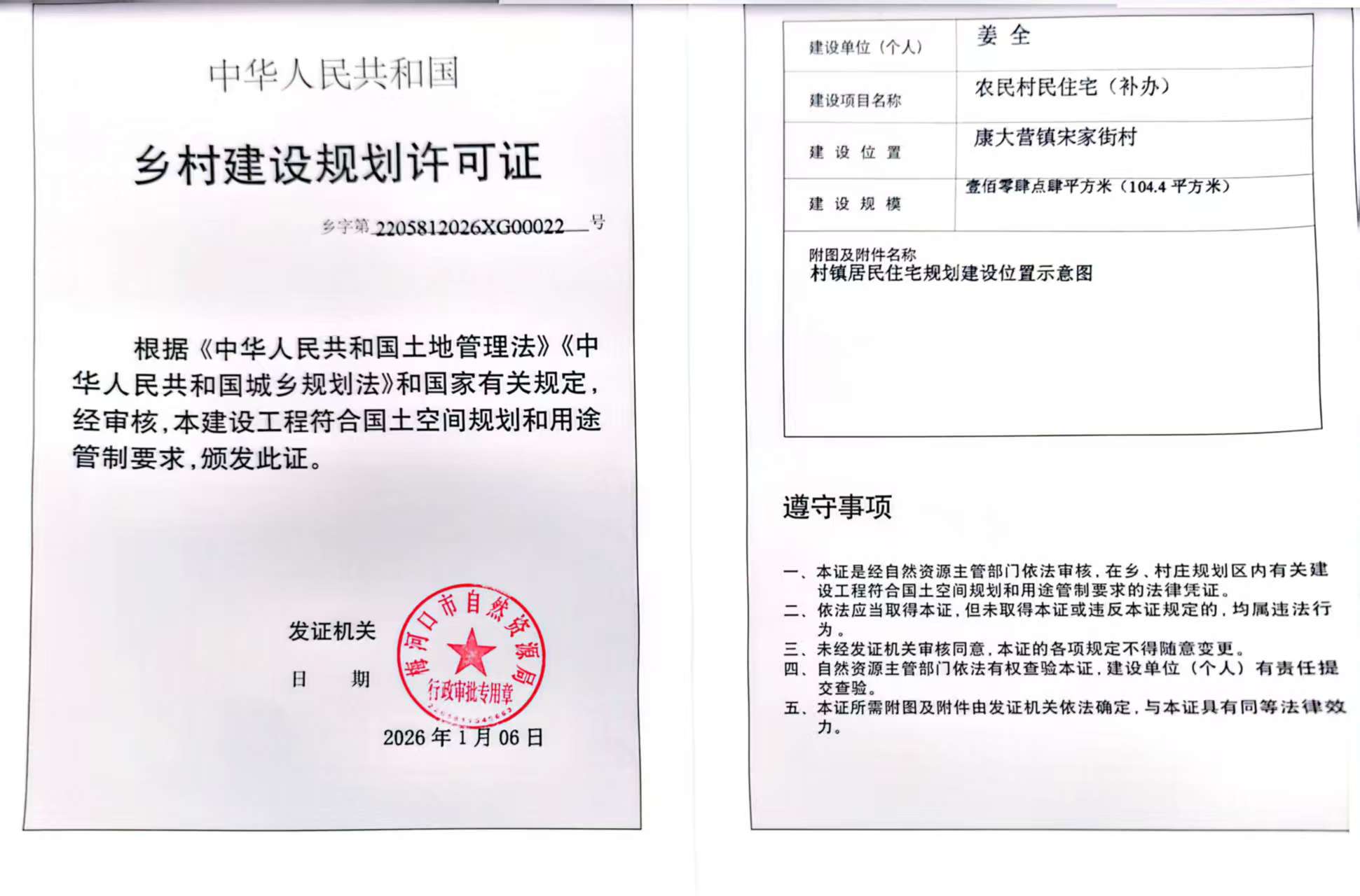 乡村建设规划许可证—姜全