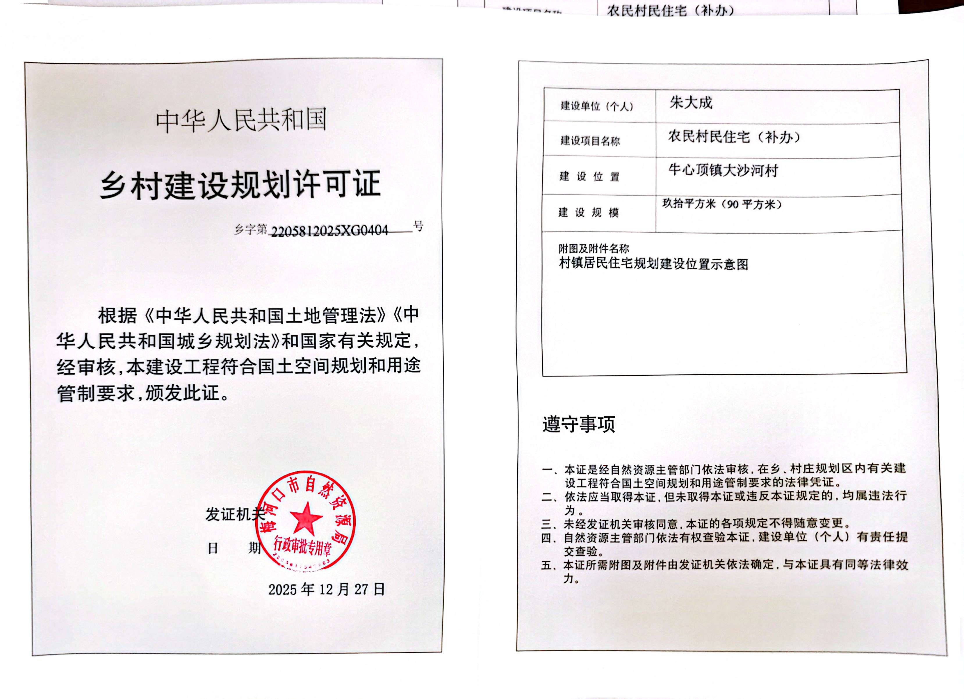 乡村建设规划许可证—朱大成