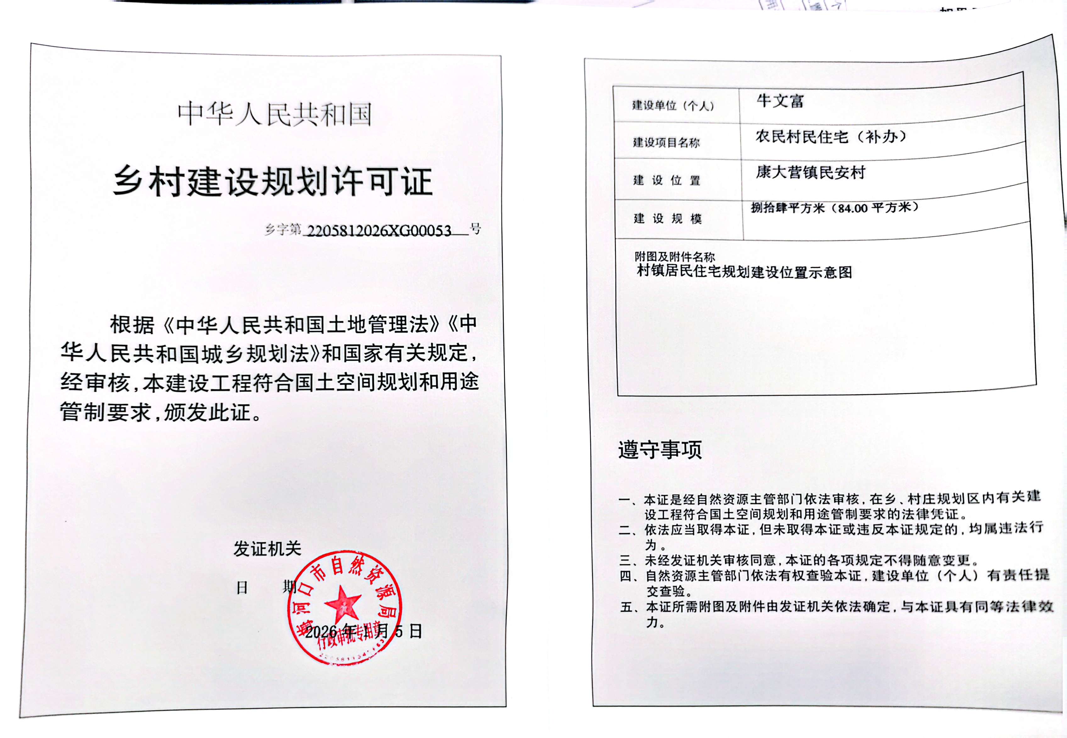 乡村建设规划许可证—牛文富