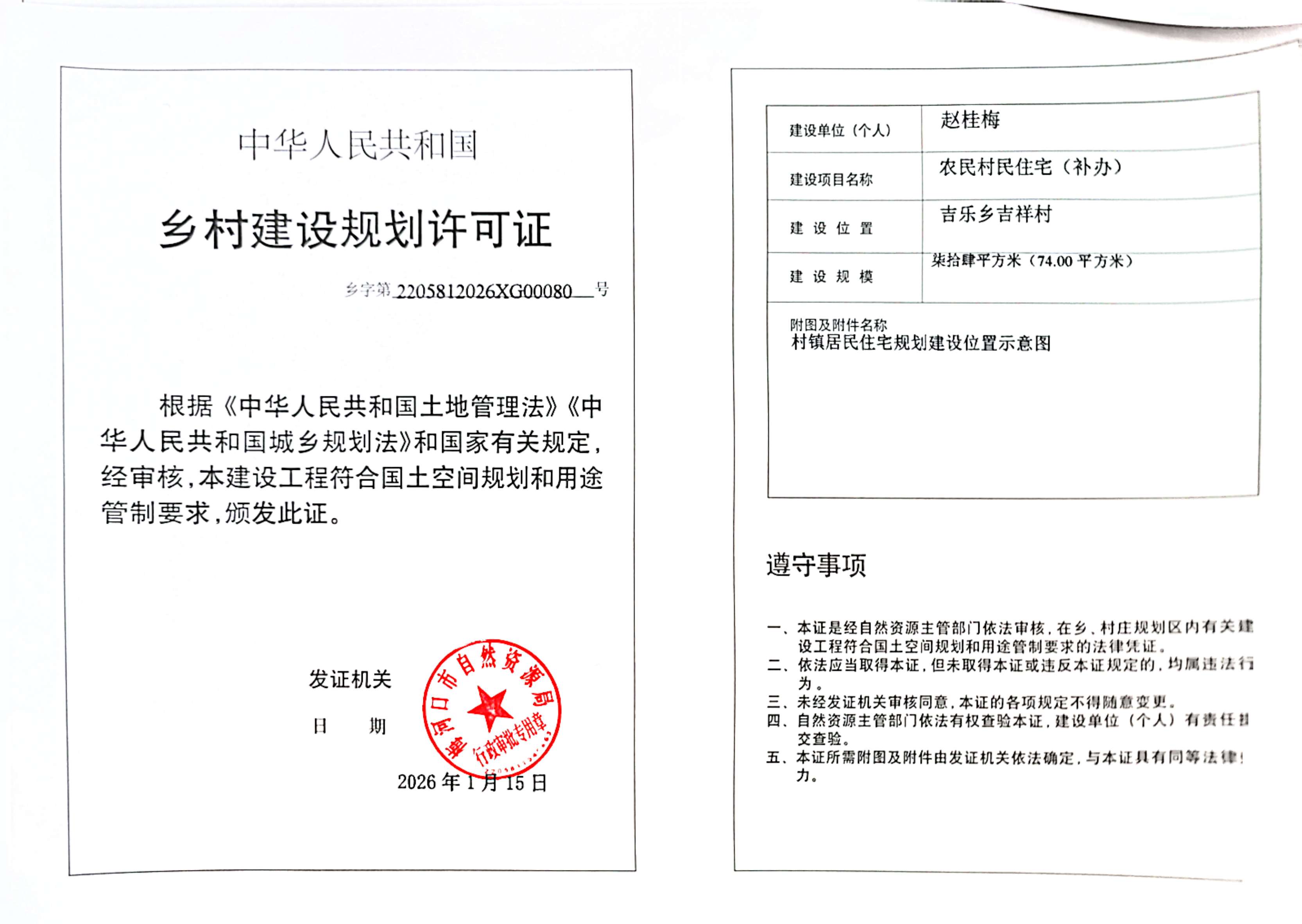 乡村建设规划许可证—赵桂梅