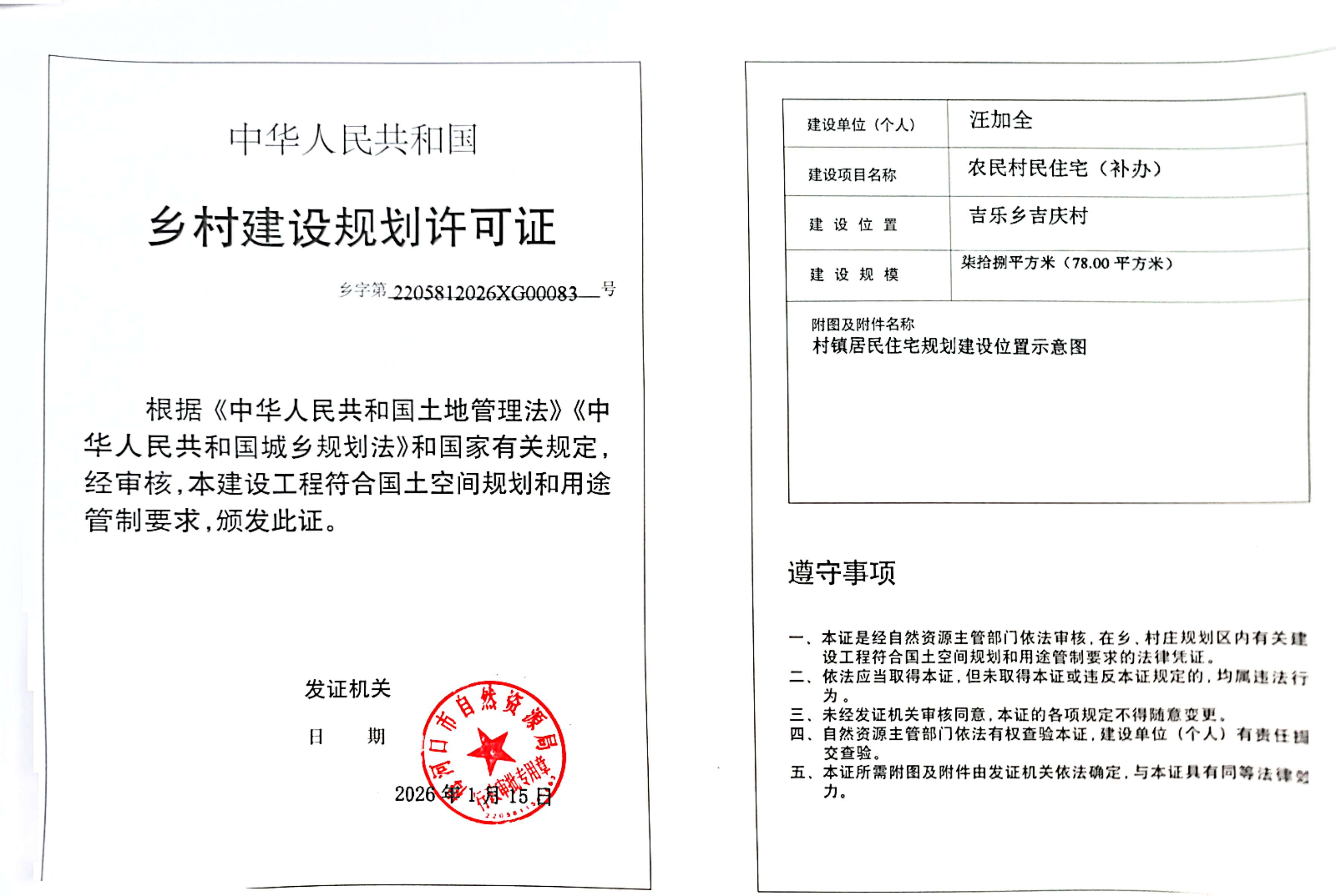 乡村建设规划许可证—汪加全