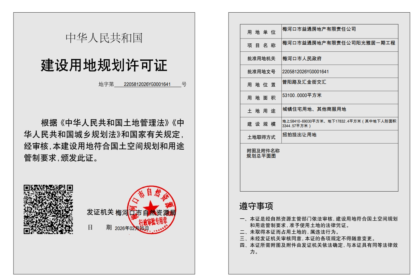 建设用地规划许可证—梅河口市益通房地产有限责任公司阳光雅居一期工程