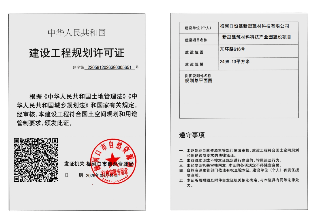 工程规划许可证——新型建筑材料科技产业园建设项目(补办)