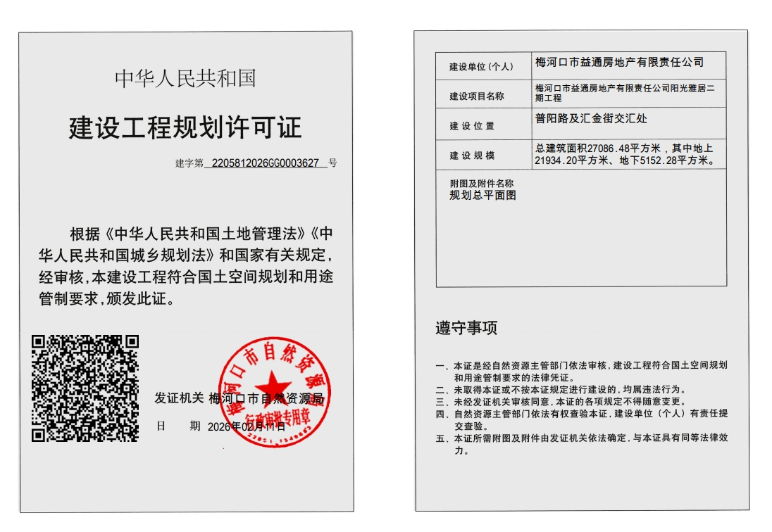 工程规划许可证——梅河口市益通房地产有限责任公司阳光雅居二期工程