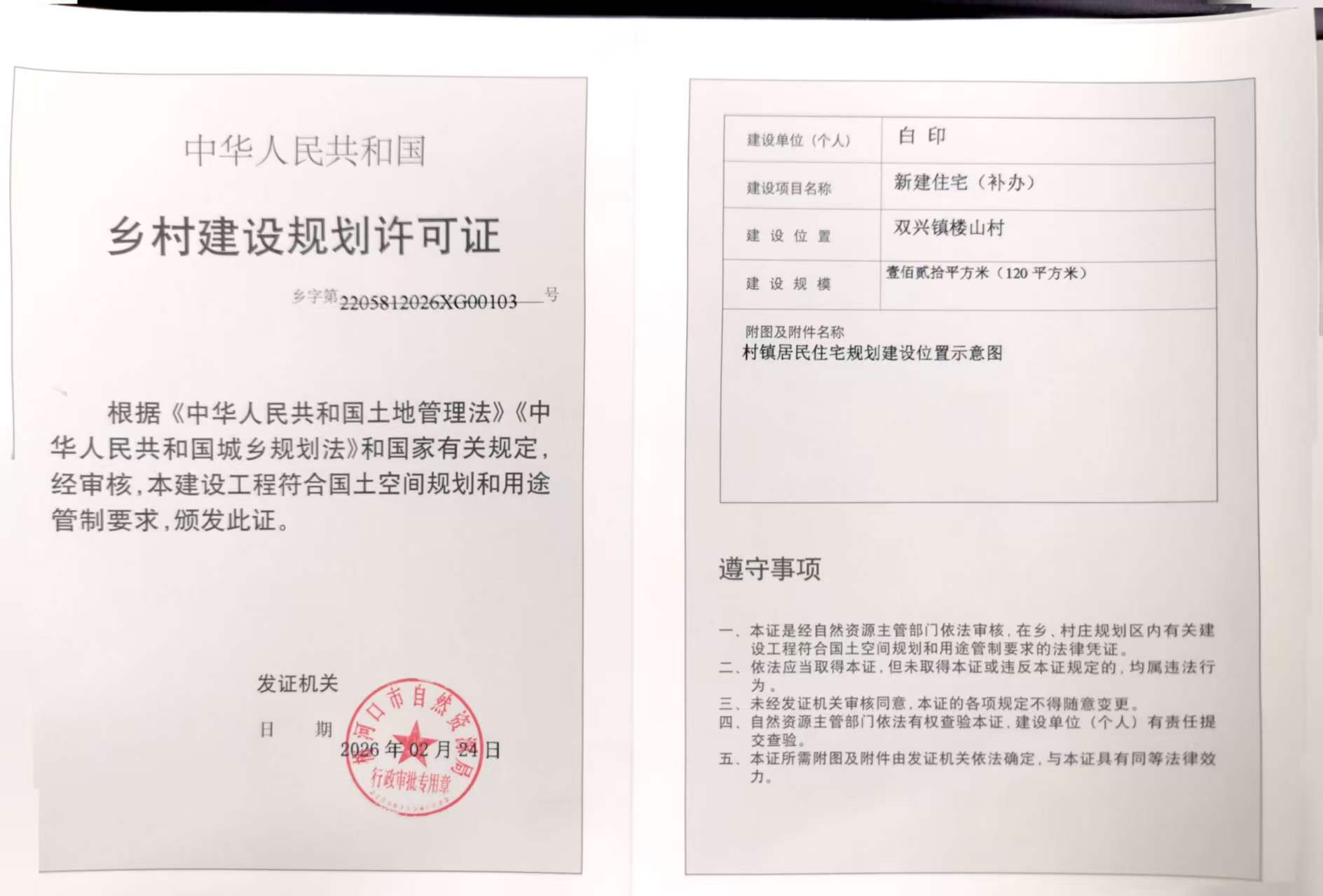 乡村建设规划许可证—白印