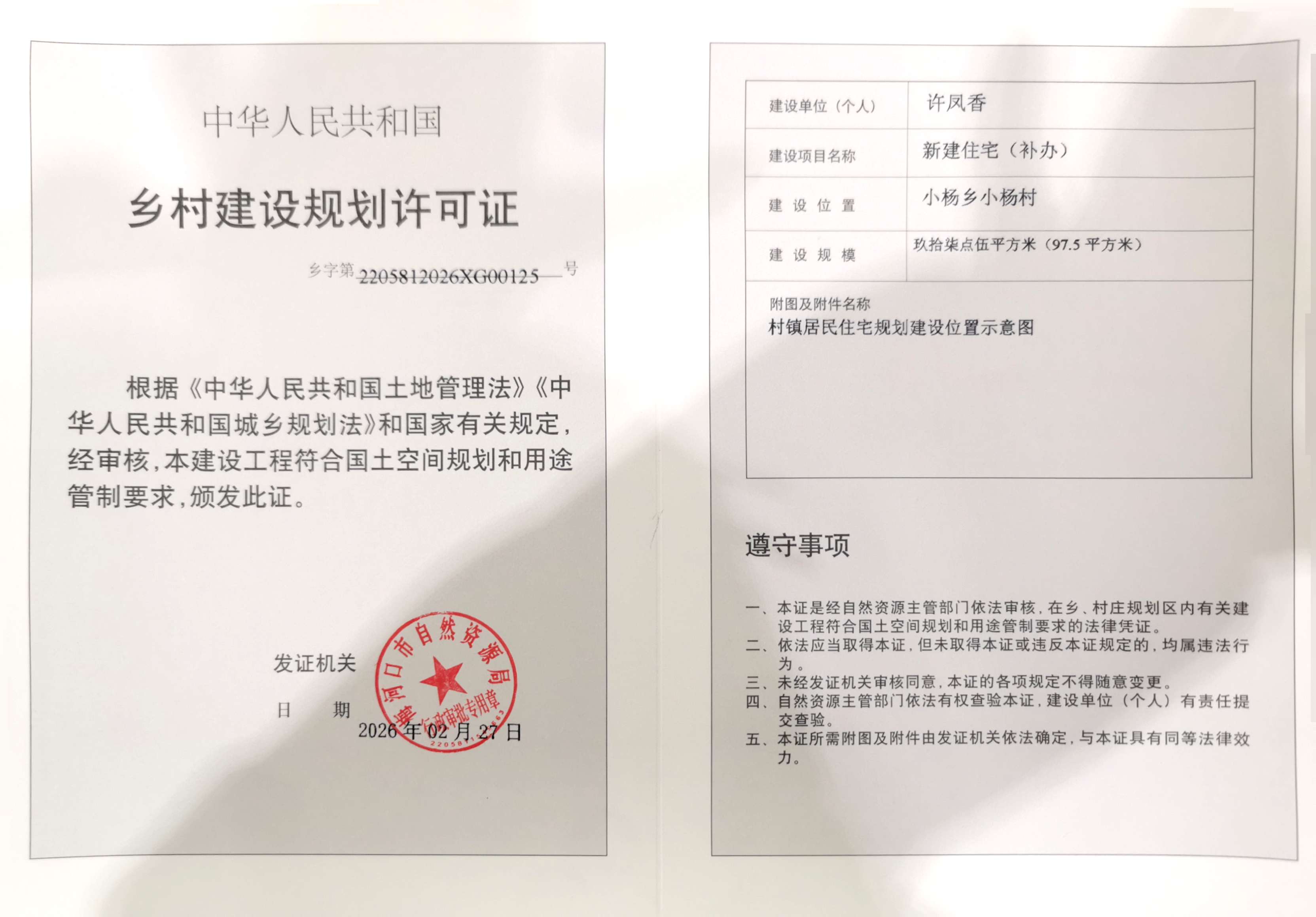乡村建设规划许可证—许凤香