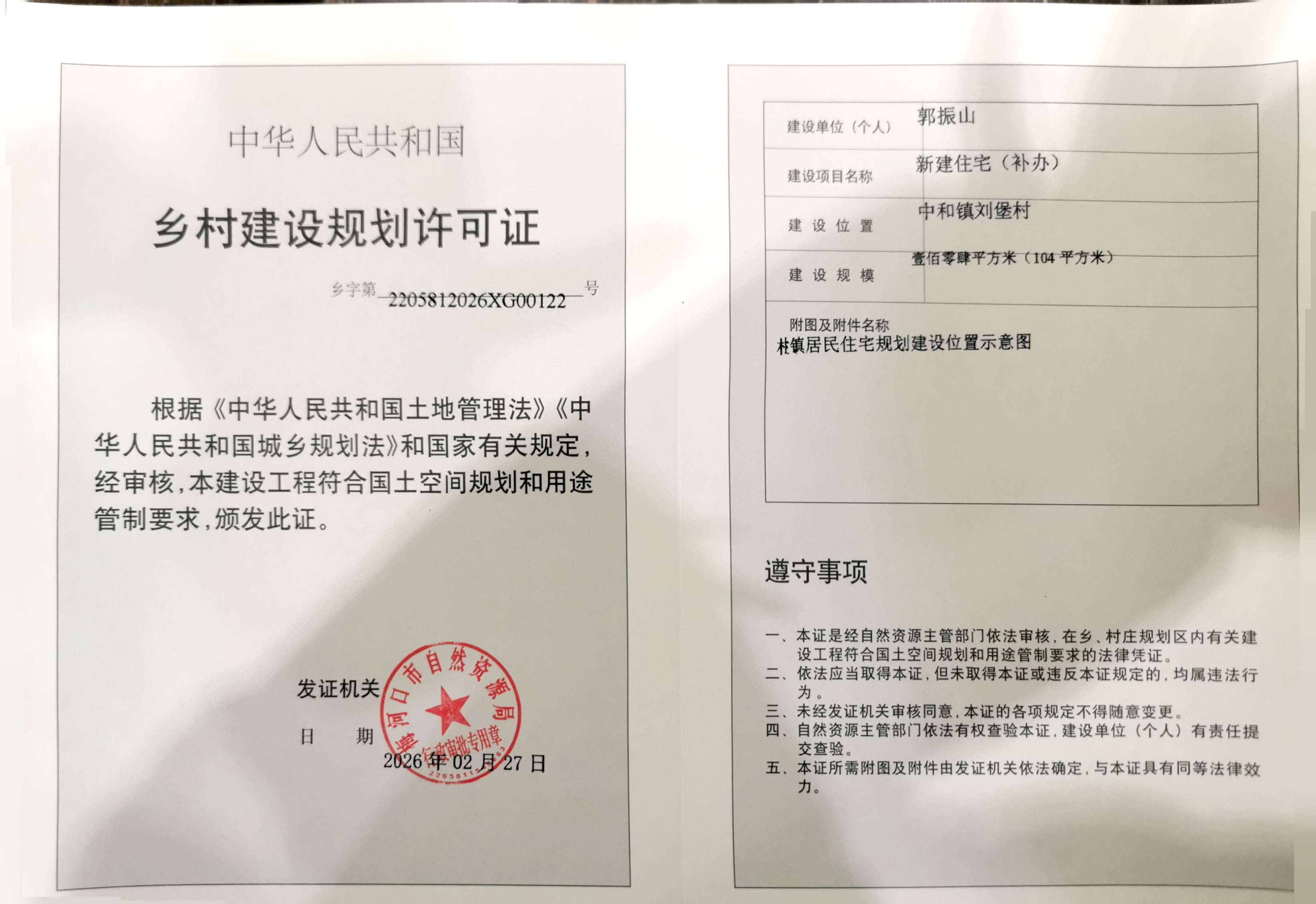 乡村建设规划许可证—郭振山