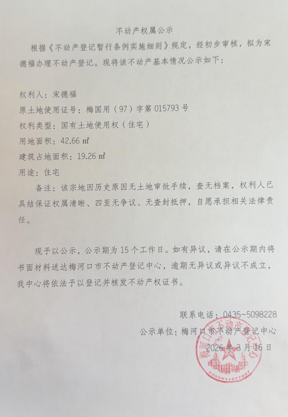 关于宋德福不动产权属公示
