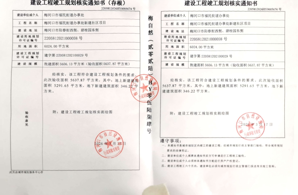 规划条件核实与土地核验合格证—梅河口市福民街道办事处新建社区项目