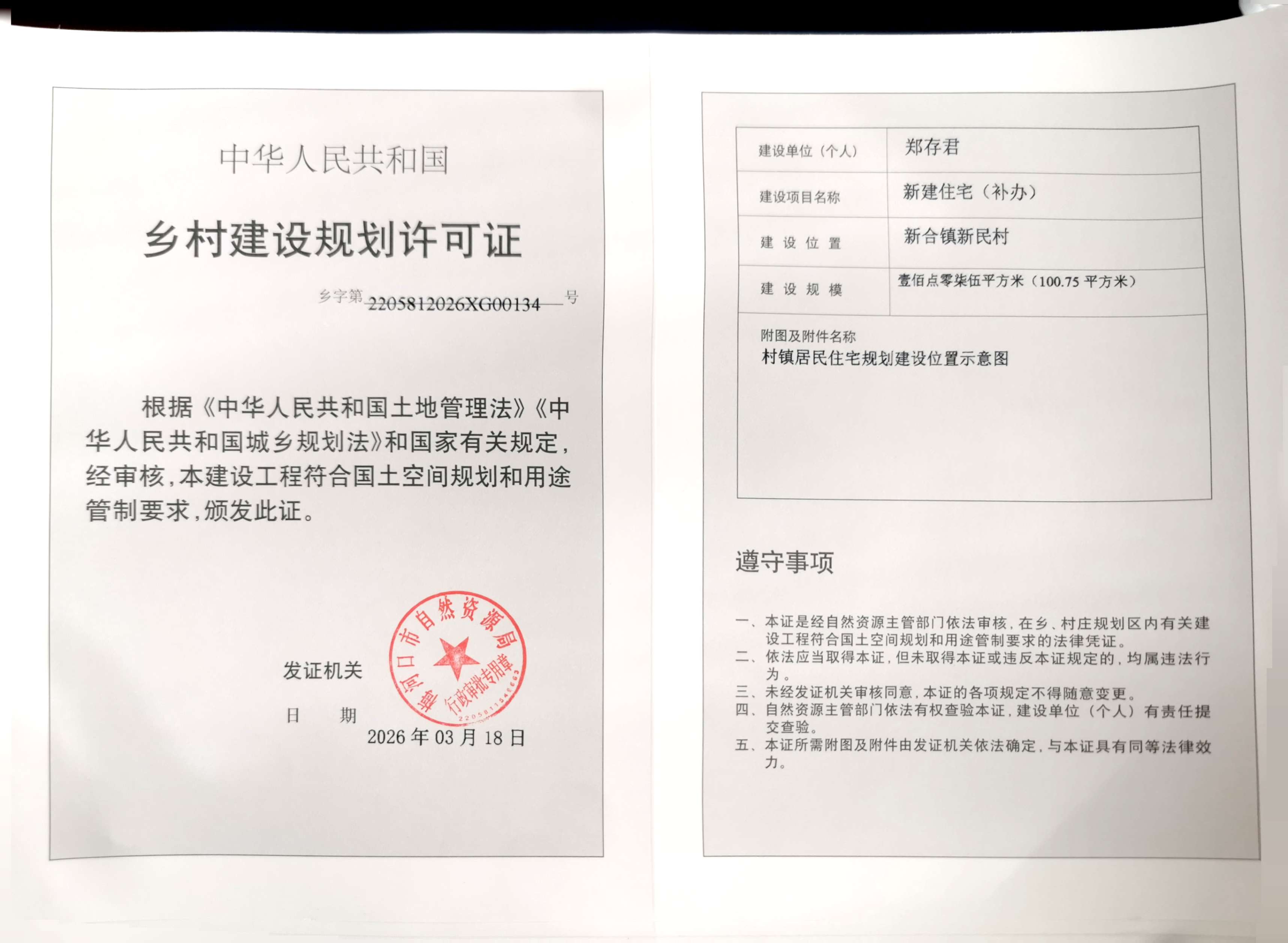 乡村建设规划许可证—郑存君