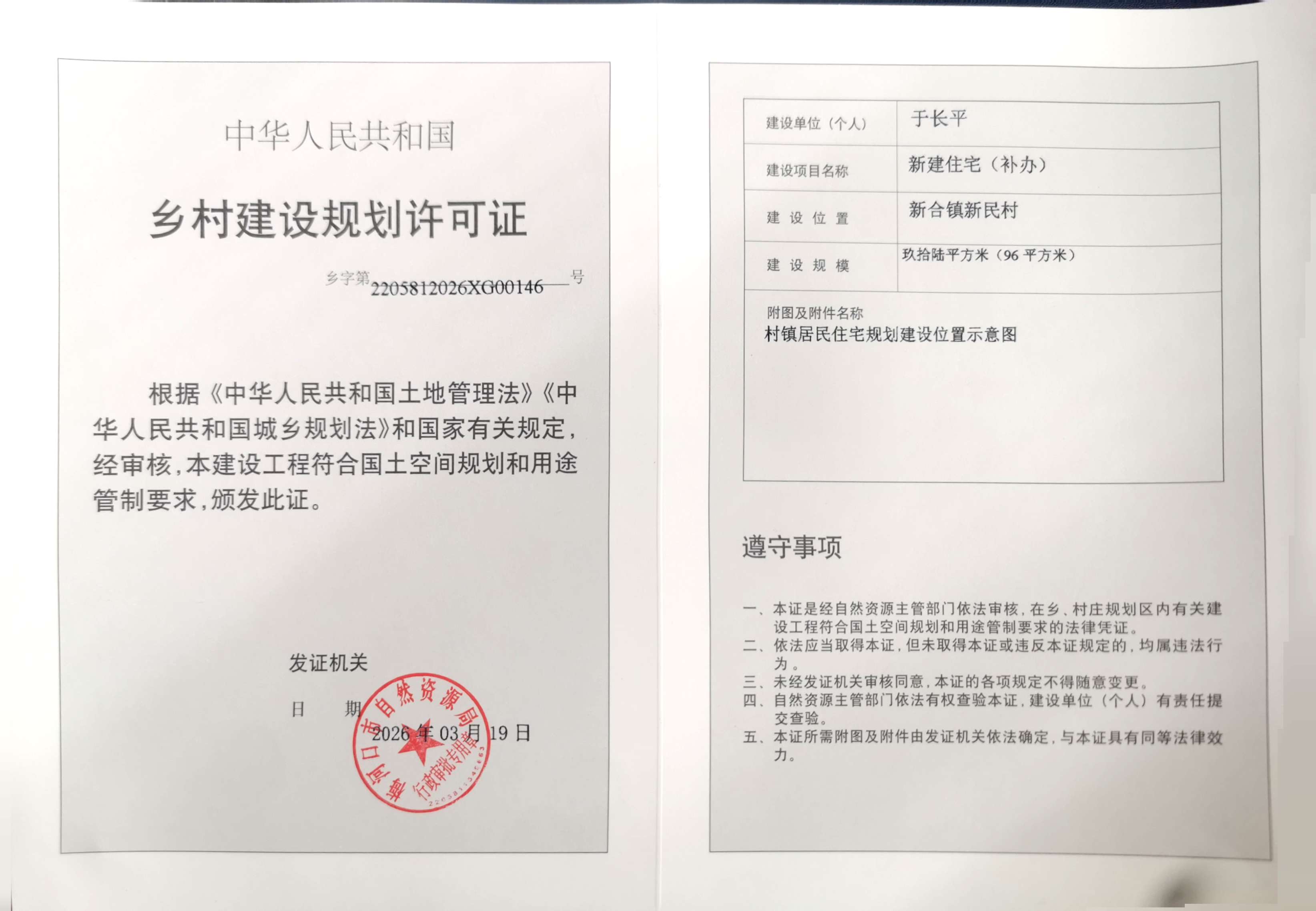 乡村建设规划许可证—于长平