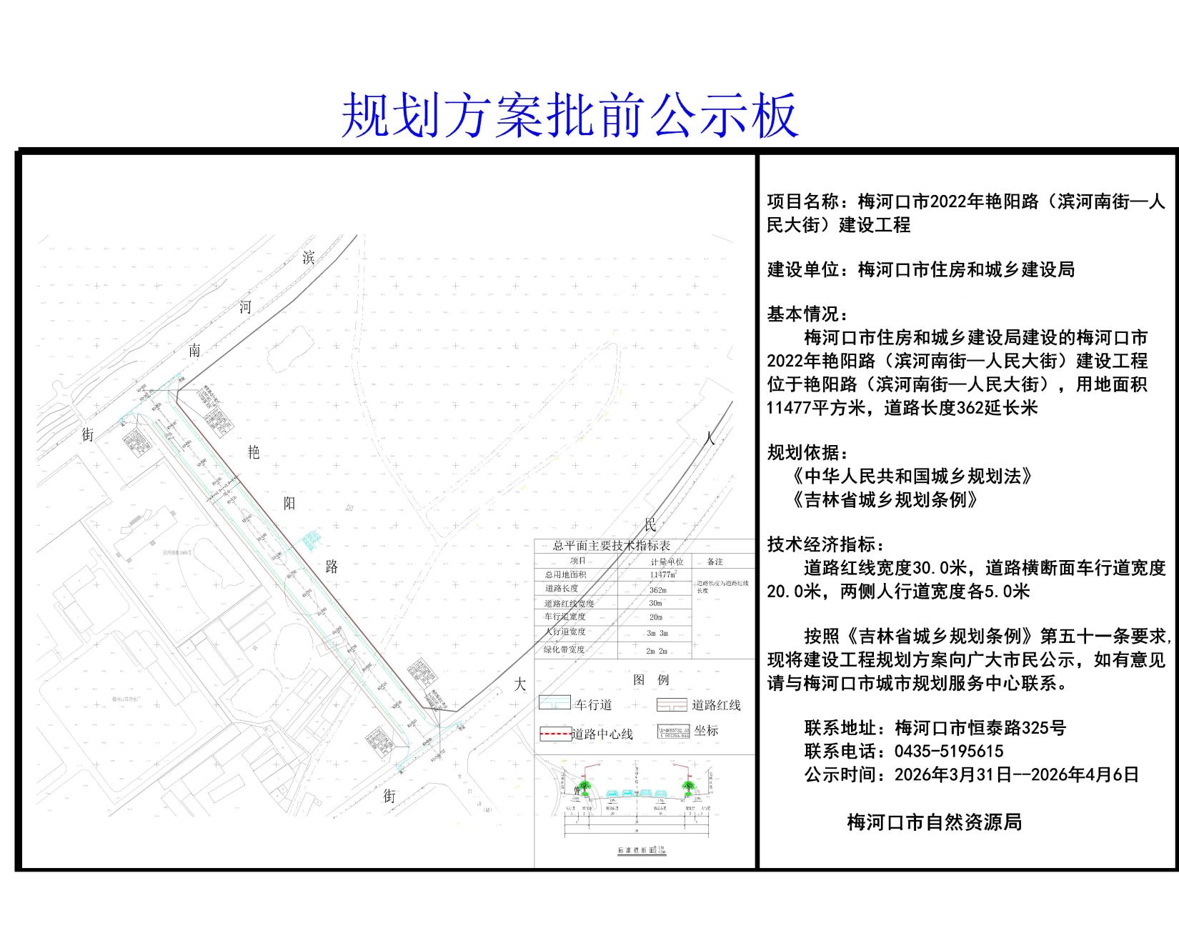 梅河口市2022年艳阳路(滨河南街—人民大街)建设工程设计方案批前公示