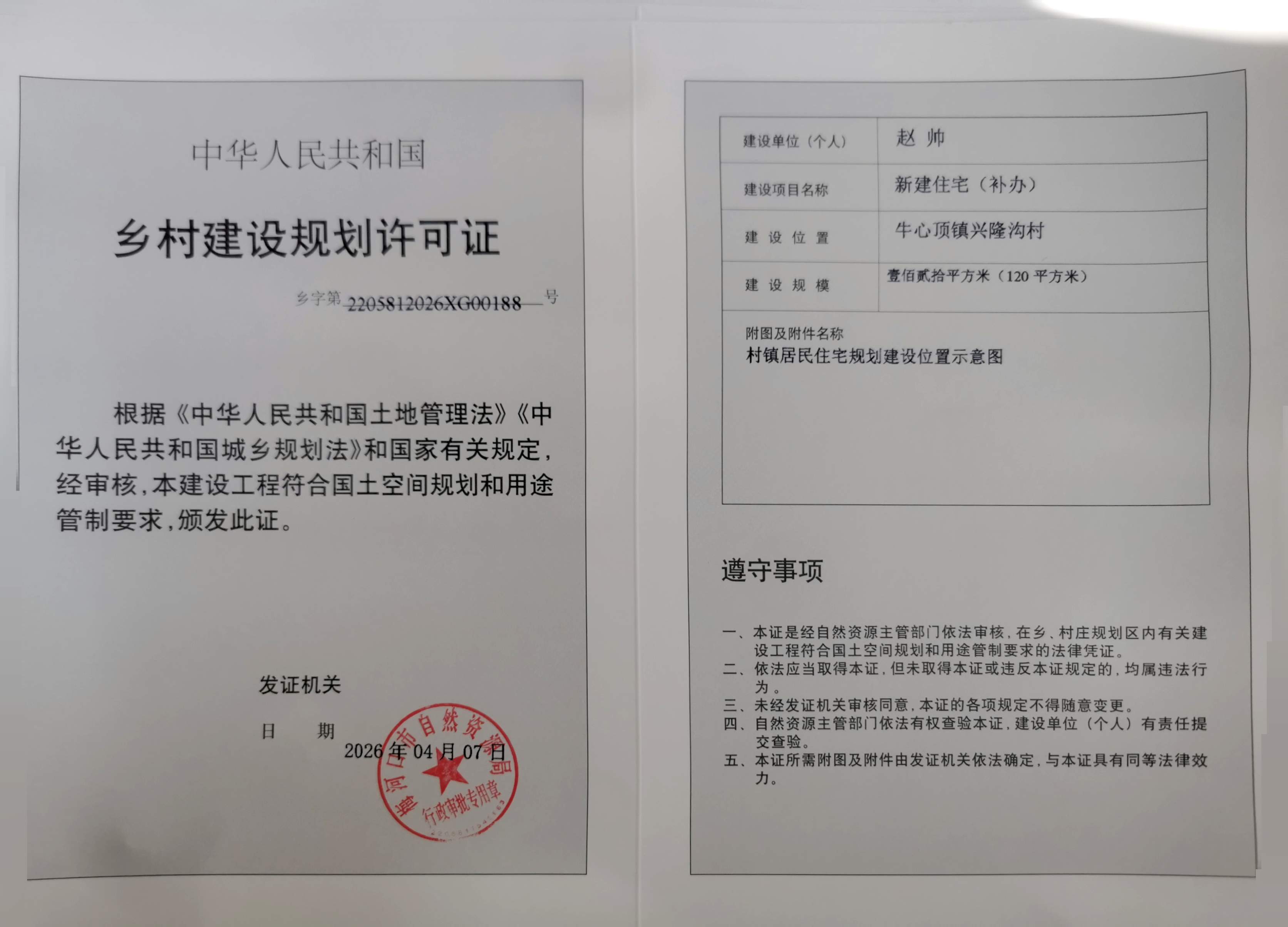 乡村建设规划许可证—赵帅