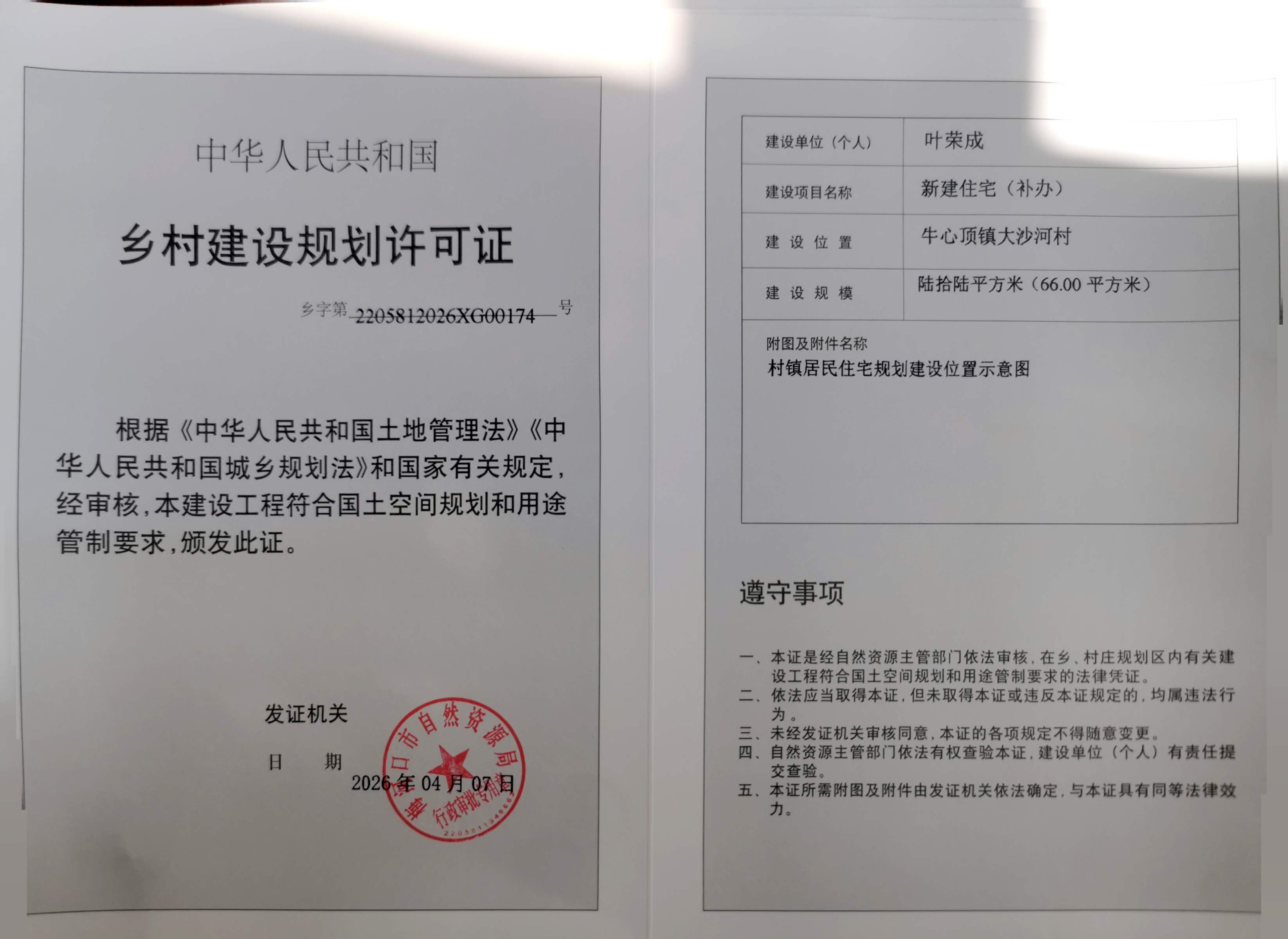 乡村建设规划许可证—叶荣成