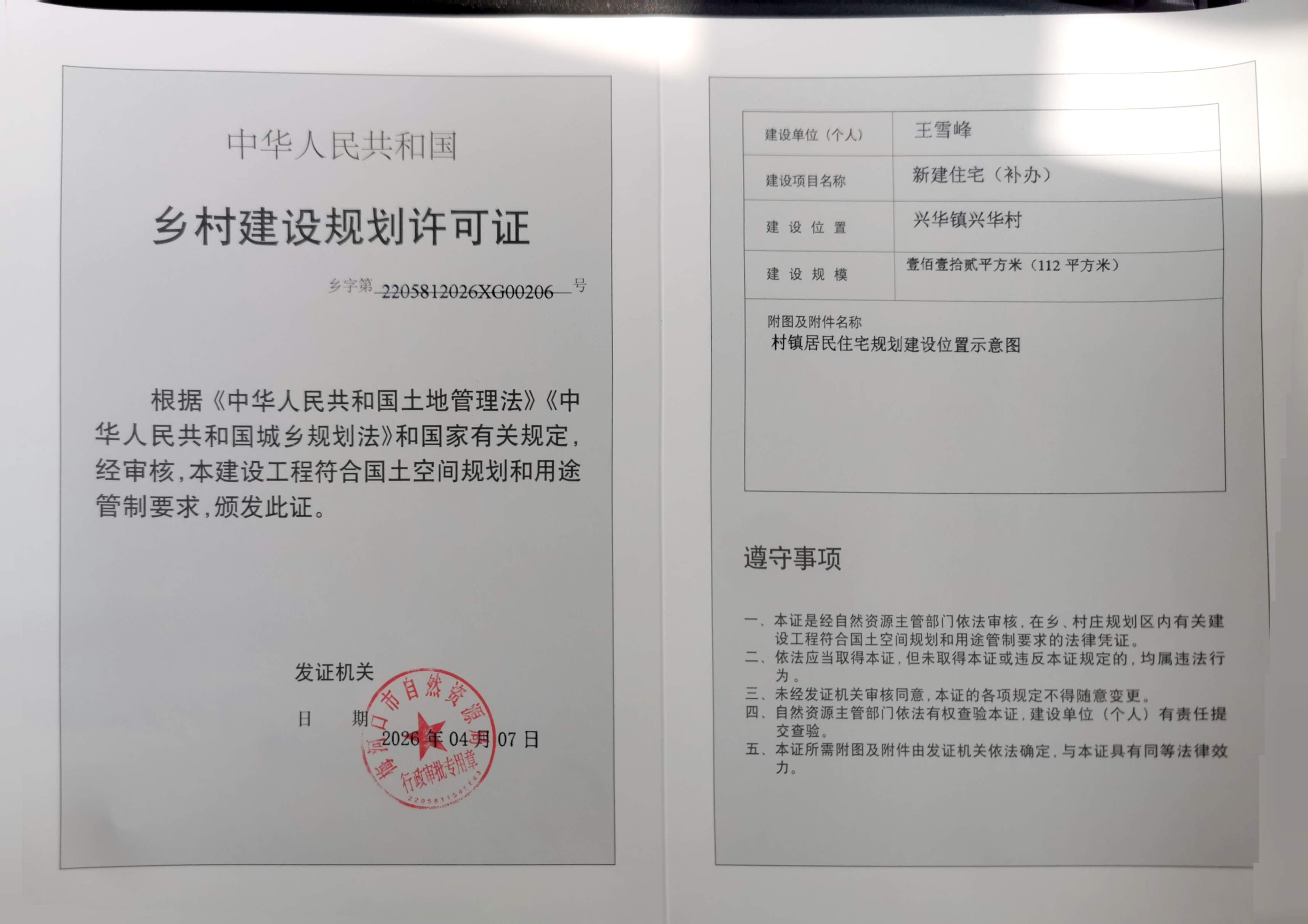 乡村建设规划许可证—王雪峰