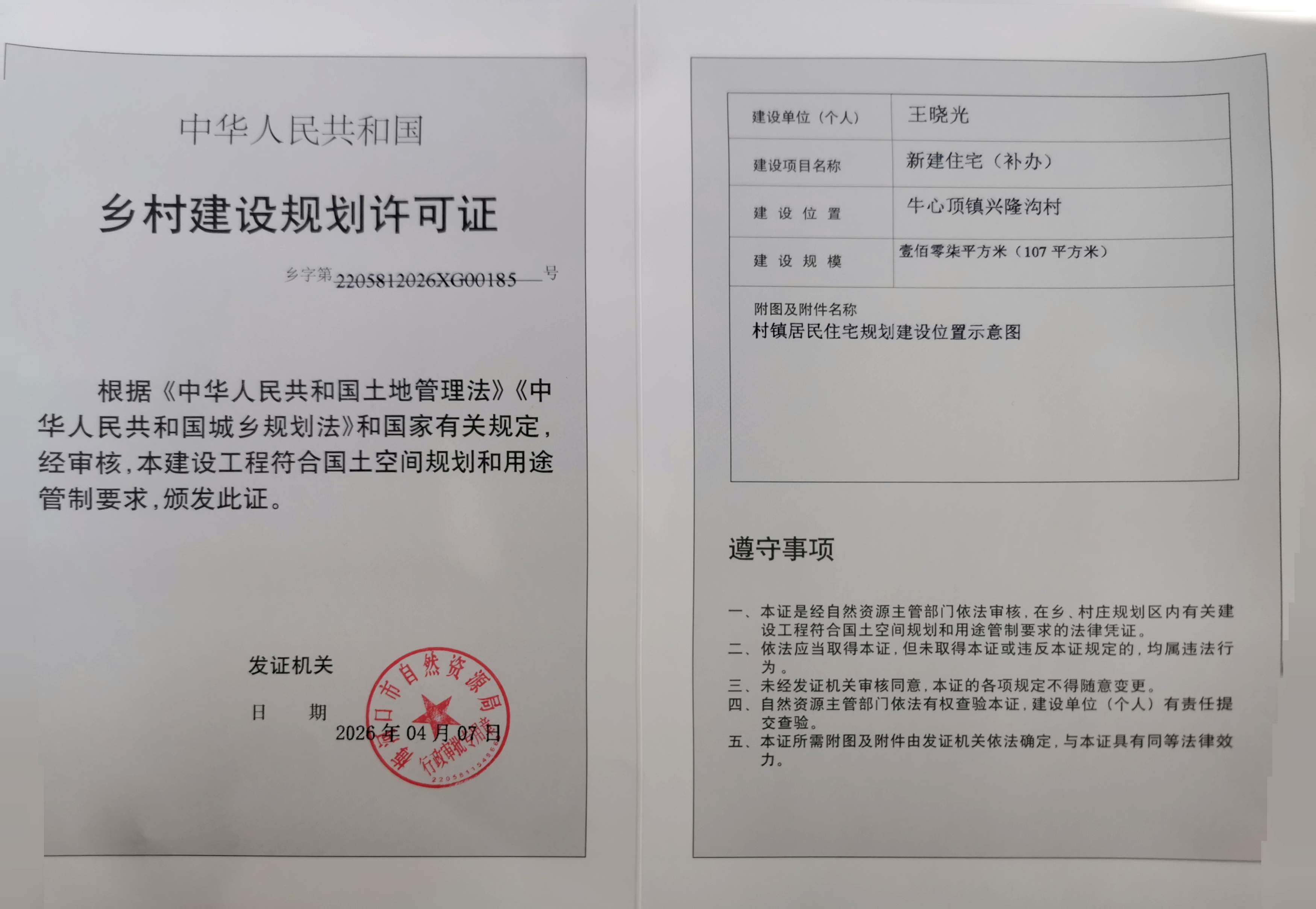 乡村建设规划许可证—王晓光