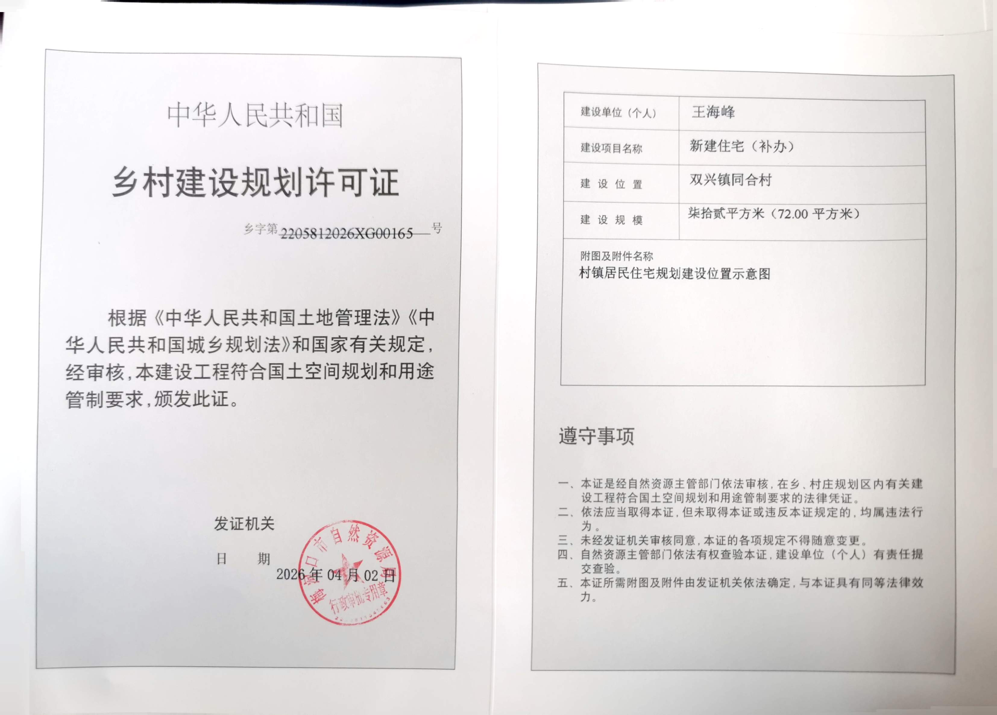乡村建设规划许可证—王海峰