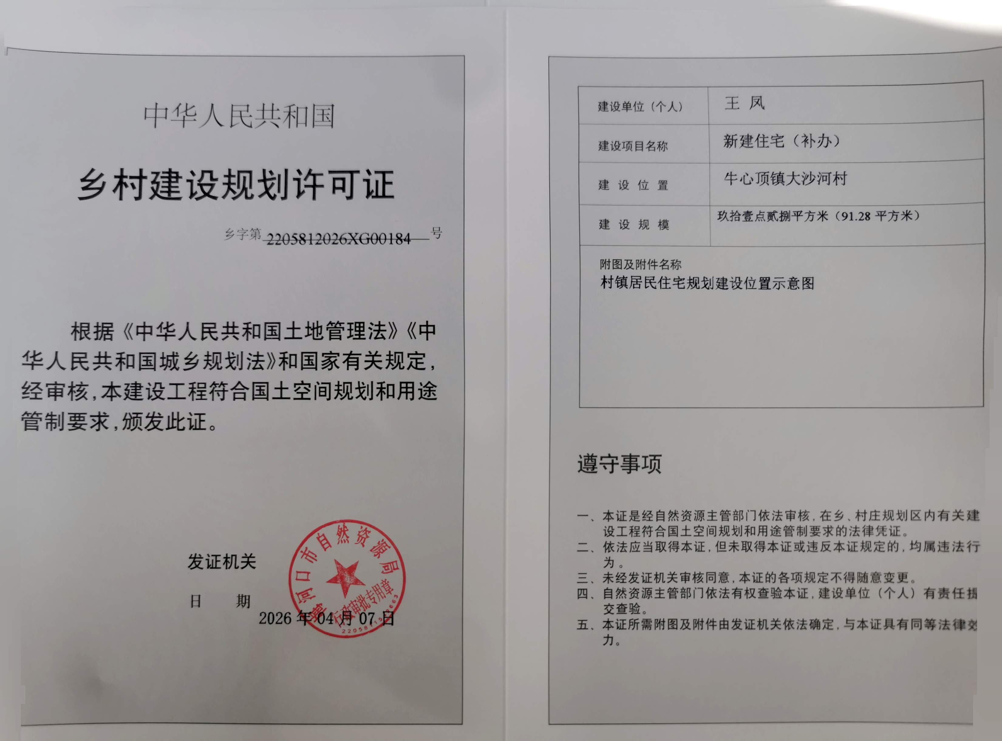 乡村建设规划许可证—王凤