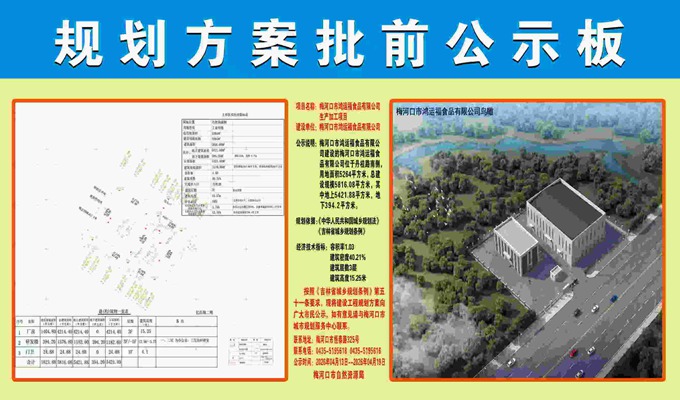 梅河口市鸿运福食品有限公司生产加工项目规划方案批前公示板