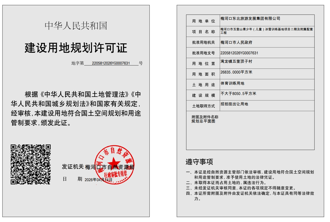 建设用地规划许可证—梅河口市五奎山青少年(儿童)冰雪训练基地项目二期及附属配套工程1