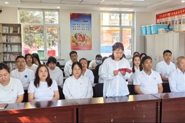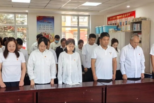 活动在庄严的国歌声中拉开序幕,全体党员肃立高唱,铮铮誓言在会场回荡。随后,全体党员面向鲜红的党旗,举起右拳,重温入党誓词,铿锵有力的誓言,是初心使命的再宣誓,是信仰信念的再淬炼。通过诵读党章,全体党员进一步增强党性修养,强化遵守党章、贯彻党章、维护党章的政治自觉。在北京时间九点十八分,防空警报划破长空,全体人员肃穆起立,低头默哀,深切缅怀在抗日战争中英勇牺牲的革命先烈和遇难同胞。这一刻,时间仿佛凝固,只有警报声在提醒我们:铭记历史,不忘国耻,珍爱和平,开创未来。