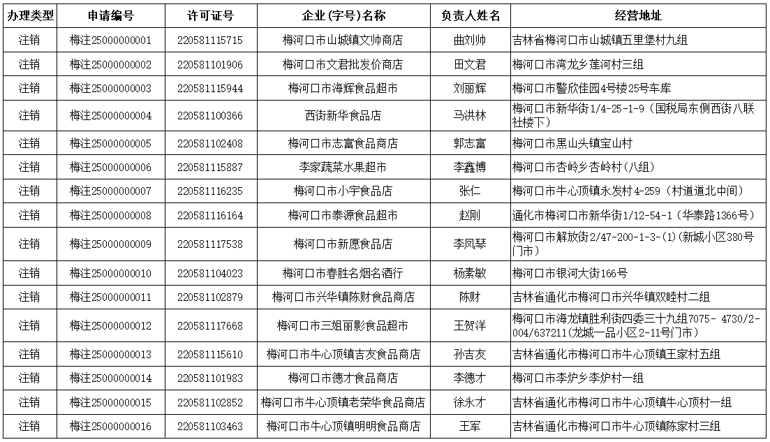 梅河口市烟草专卖局注销商户公示