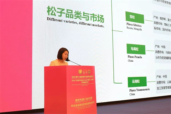 在2025-2026年坚果籽类、干果果干原料(种业)产品分析预测发布会上,市松子协会秘书长崔琳围绕2025年松子生产情况、出口贸易数据展开深度复盘,并结合市场环境、供需格局对2026年产业形势作出科学预判,系统梳理松子产业发展现状,清晰指明未来发展方向,为从业者决策提供专业依据。