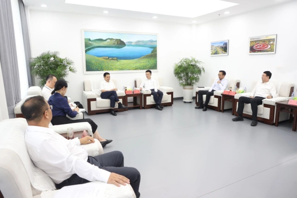 8月12日,梅河新区党工委书记、梅河口市委书记朱欢会见中国农业银行吉林省分行党委书记、行长刘世安一行。