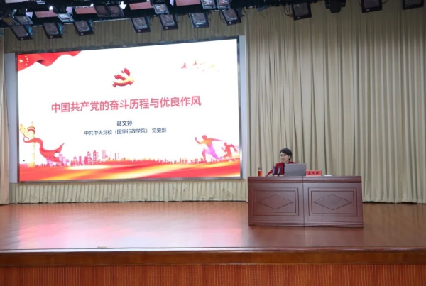 为深化全体干部对党百年奋斗历程和历史性贡献的理解感悟,进一步提升干部的理论素养和履职能力,持之以恒加强干部作风建设,我市精心组织本期大讲堂,邀请中共中央党校(国家行政学院)中共党史教研部新时期改革开放史教研室副主任、教授聂文婷作专题授课。聂文婷教授以《中国共产党的奋斗历程与优良作风》为题,从理论联系实际、密切联系群众、批评与自我批评、坚定的理想信念等四个方面进行专题辅导。聂文婷教授的授课史料翔实、论述精辟,既系统回顾了党的百年奋斗历程,又深刻阐释了党的优良作风的形成逻辑与时代价值,为深化党史学习、强化作风建设、推动高质量发展提供了宝贵的思想指引和实践遵循。