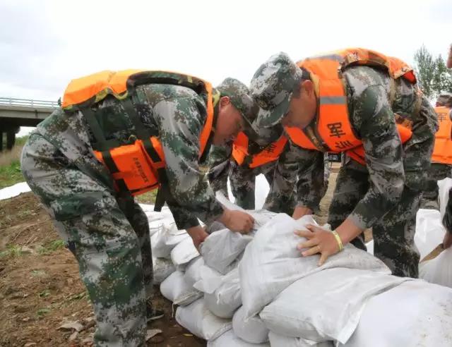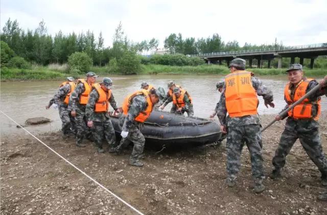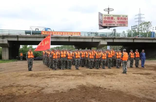 6月15日上午,我市举行民兵应急连抗洪抢险演练。