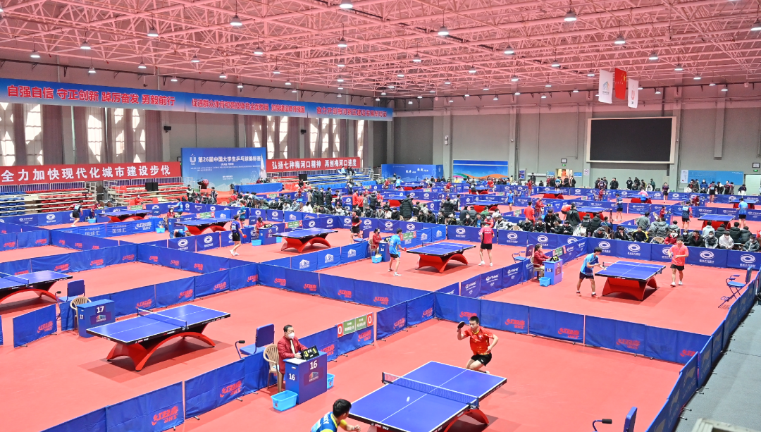 11月5日,第26届中国大学生乒乓球锦标赛(丙A组、丙B组)在我市体育中心乒乓球馆拉开帷幕。