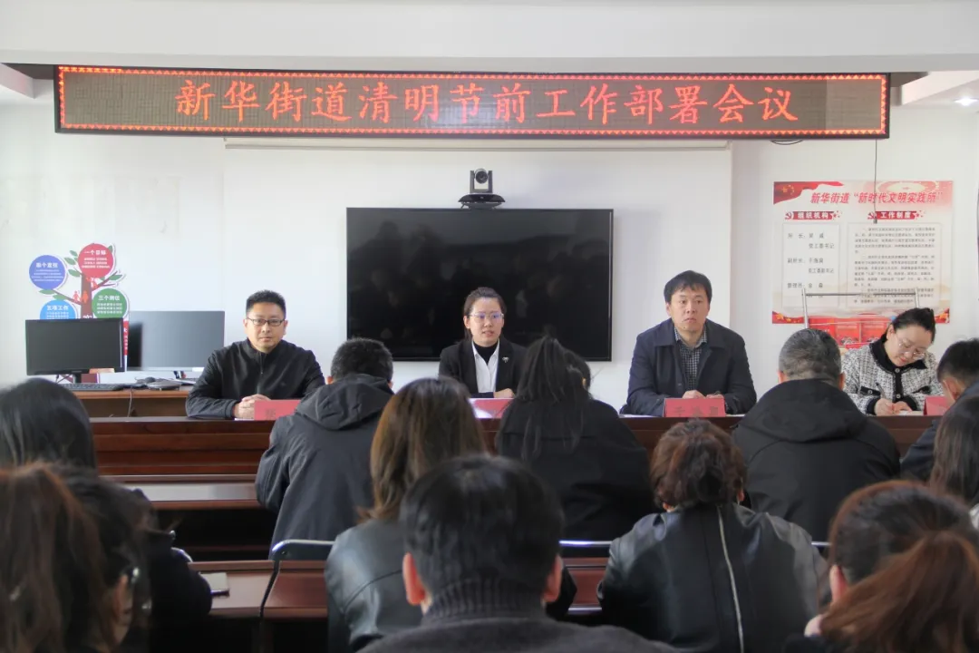为确保清明期间辖区安全稳定,4月3日上午,新华街道召开清明节期间工作部署会议。会议由党工委副书记、办事处主任马田力主持,街道领导班子在家成员出席会议,各社区(村)书记和安监员、生态环境办公室、应急办公室、自然资源和水利林业站全员,其他站办所所长参加会议。