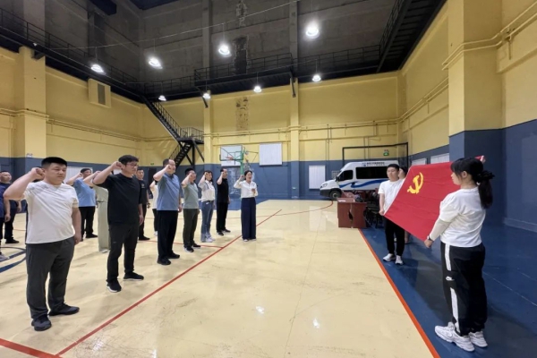 在鲜红的党旗下,由党组成员、副局长同志领誓,全体党员庄严举起右手,重温入党誓词,共同回顾入党宣誓时的庄严承诺和坚定决心,用铮铮誓言彰显作为共产党员的初心与使命。