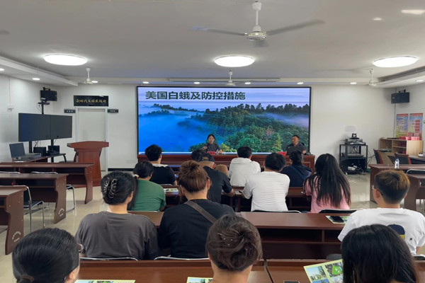 为扎实推进林业有害生物防治工作,压紧压实属地监管责任,切实提升辖区美国白蛾防治水平,福民街道组织召开美国白蛾防控知识现场培训会,邀请梅河口市森林病虫害防治检疫站站长戴勇为街道、社区、村、物业等林业相关工作人员40余人进行培训。