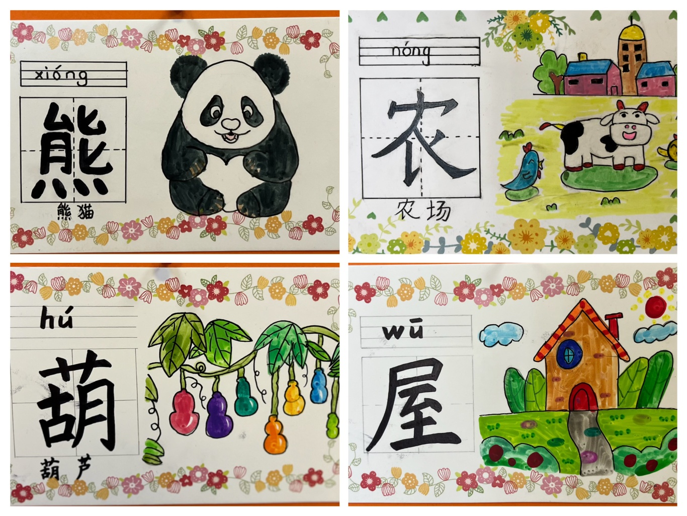一字开花,智慧开花。在识字课上,孩子们学习到了看图识字、归类识字、古诗识字,偏旁识字等多种识字方法,于是他们用自己的巧手写一写、画一画、剪一剪、做一做,将多样的识字方法在字卡上大放异彩。学生通过字卡的制作和运用,提高了识字兴趣及自主识字水平,同时增加了识字量,获得满满的成就感和自豪感。