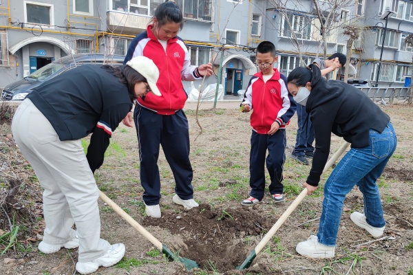 活动现场,孩子们热情高涨,分工明确。有的拿起铁锹,努力地挖坑,尽管小小的手掌很快就沾满了泥土,额头也冒出了汗珠,但专注的神情却始终未曾改变;有的小心翼翼地将小树苗放进挖好的坑里,扶正树苗的动作轻柔而认真;还有的几个孩子一起合作,抬着装满水的水桶,迈着不太稳健却坚定的步伐,给小树苗浇上“生命之水” 。