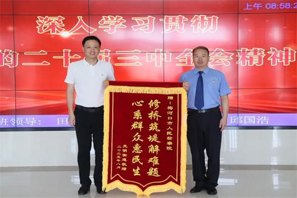 8月5日,光明街道党工委书记梁浩专程来到梅河口市人民检察院,送上饱含谢意的锦旗,对包保部门检察院长期以来的帮助支持表示衷心感谢。