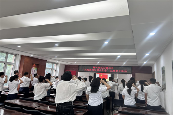 为纪念中国人民抗日战争暨世界反法西斯战争胜利80周年,进一步激发社区党员爱国情怀与使命担当,在中国人民抗日战争胜利纪念日,解放街道站前社区组织开展“抗战胜利80周年纪念”主题党日活动,联建单位红十字会、梅河口市农村信用合作联社党员参加,共同见证强国力量的高光时刻。