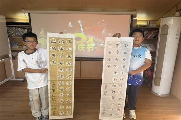 活动开始前,孩子们的脸上洋溢着自豪与兴奋,他们逐一展示了自己在这个暑假里通过筑梦空间书法特长班学习所完成的作品。一幅幅书法作品或刚劲有力,或温婉秀丽,展现了孩子们在书法艺术上的成长与进步。