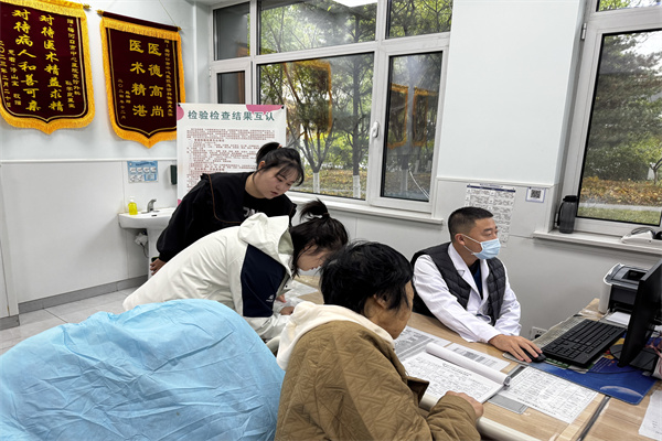 到达医院后,张舒菡、安琳、刘思岩协助家属办理入院手续,并不断安抚疼痛的阿姨。经检查,阿姨确诊腿部骨折,目前情况已稳定。