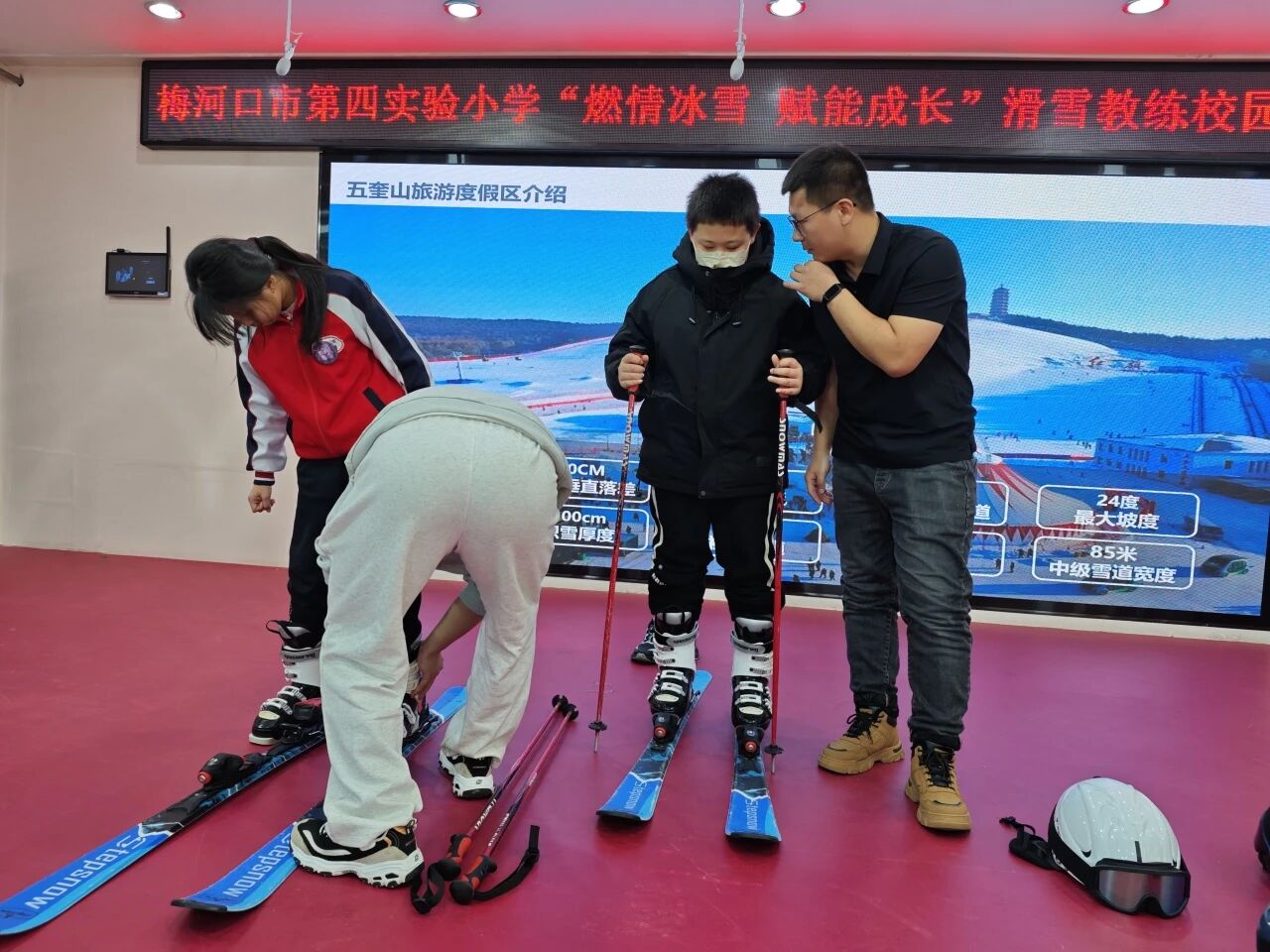 冰雪逐梦,活力校园。为持续深化冰雪运动进校园,进一步普及冰雪知识,提升学生运动素养,第四实验小学积极号召学生走进冰雪、体验滑雪乐趣,同学们踊跃响应,在雪假期间主动参与滑雪实践,解锁运动新技能,尽享冰雪魅力。12月8日,梅河新区教育局(梅河口市教育局)联合梅河口东北旅游发展集团有限公司开展的“滑雪教练校园公益行”活动走进我校,学校组织三至六年级学生分批次参与,以课堂科普衔接假期实践,让学生在冰雪体验中收获全方位成长。