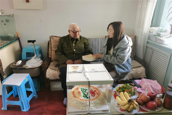 演出结束后,社区书记带领工作人员带着生日蛋糕、党员学习读物与慰问品为重阳节过生日的老党员送上生日祝福,询问他们的身体状况和生活情况,叮嘱他们保重身体,向老党员们致以节日的问候和崇高的敬意。