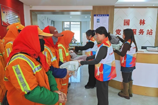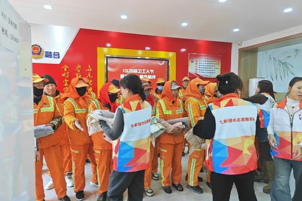 活动当天,园林党群服务站工作人员早早整理好保暖物资,待环卫工人作业间隙集中来到现场后,有序开展发放工作。工作人员与环卫工人亲切交流,详细询问他们近期的工作强度与生活状况,叮嘱大家秋冬季节早晚温差大,户外作业时要注意保暖防寒,确保自身安全。“没想到重阳节还能收到这么贴心的礼物,既暖身又暖心!”一位从事环卫工作多年的师傅接过物资,脸上露出了欣慰的笑容。