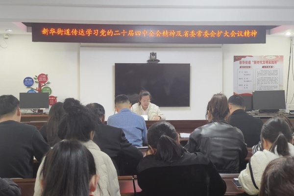 新华街道召开党工委扩大会,会议传达学习了党的二十届四中全会精神、省委常委会扩大会议精神及梅河新区党工委、梅河口市委常委会(扩大)会议精神,并就全街贯彻落实会议精神和近期重点工作进行部署,街道党工委书记马田力主持会议,街道领导班子成员、各站办所长、各社区(村)书记参加会议。