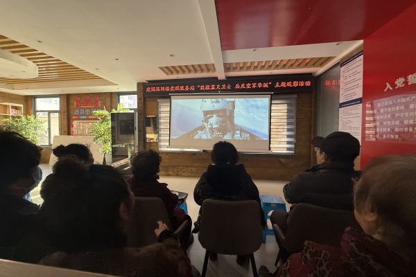 为庆祝中国人民解放军空军建军纪念日,致敬捍卫祖国蓝天的忠诚卫士,建国路网格党群服务站组织开展了“致敬蓝天卫士 共庆空军华诞”主题观影活动,辖区退役军人、党员和居民齐聚一堂,共同观看热血励志影片《长空之王》。