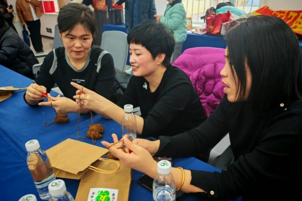 开班仪式后,暖阳职业技术培训学校教师随即开展首场钩织教学。老师们走入学员中间,俯身进行“手把手”指导,耐心讲解针法,逐一纠正手势。学员们认真学习、兴致盎然,从最初手法生疏、线绳不听使唤,到逐渐掌握要领,动作愈发流畅。课堂气氛温馨融洽,毛线穿梭声中不时传来轻声交流与豁然开朗的欣喜。一根根绒线在指尖交织,渐渐成形,每一次进步都让学员们脸上洋溢出自信与满足的笑容。