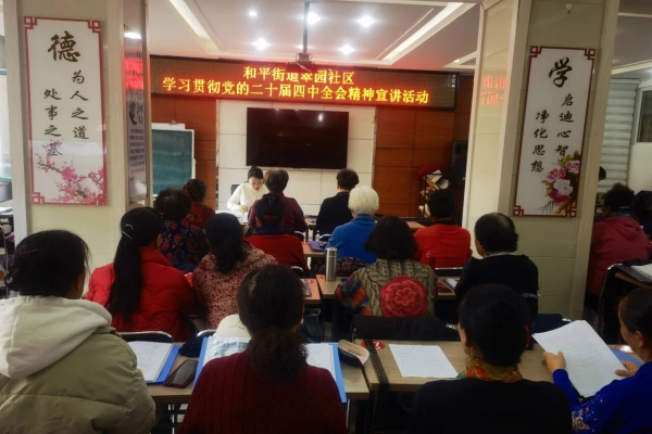 为深入学习领会、全面准确把握党的二十届四中全会的重大意义、精神实质与实践要求,推动全会精神在基层落地生根、开花结果,近日,和平街道各社区党委开展学习贯彻党的二十届四中全会精神专题宣讲活动。宣讲内容深入浅出、干货满满,将全会精神与基层工作实践紧密结合,既“接地气”又“冒热气”,让理论宣讲直抵人心。