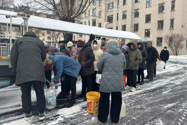上午,解放街道园林社区在获悉解放花园小区停水后,立即启动应急预案,化身“供水保障员”。一方面,与水务集团紧密沟通,追踪抢修进度,并通过居民微信群发布最新信息,让居民“心中有数”;另一方面,紧急协调的水务集团送水车迅速开进小区,社区工作人员冒着严寒在现场引导秩序,并主动询问是否有需要帮助的特殊群体。