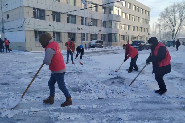 活动通知发布后,志愿者们迅速响应、踊跃参与,携带铁锹、雪推板等工具准时集结。尽管天寒地冻,志愿者们依旧热情高涨,大家分工协作、配合默契,有的挥锹破冰,有的铲雪清运,还有的志愿者主动上门,叮嘱老年居民减少外出、注意防滑。经过一番努力,小区主干道及单元门口的积雪、薄冰被彻底清理干净,鲜艳的“志愿红”在皑皑白雪中绘就出温暖的风景线。