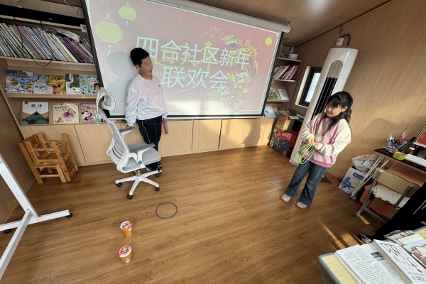 2025年12月28日,和平街道四合社区筑梦空间内洋溢着欢声笑语,2026年新年联欢会热烈举行。孩子们在寒假自习之余放松心情,尽情享受新年的喜悦与祝福。